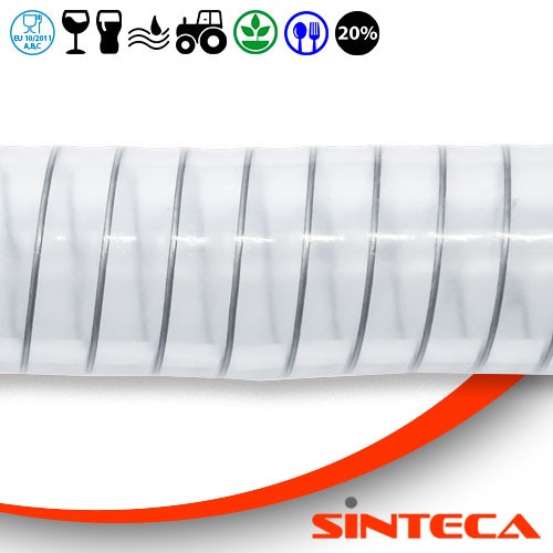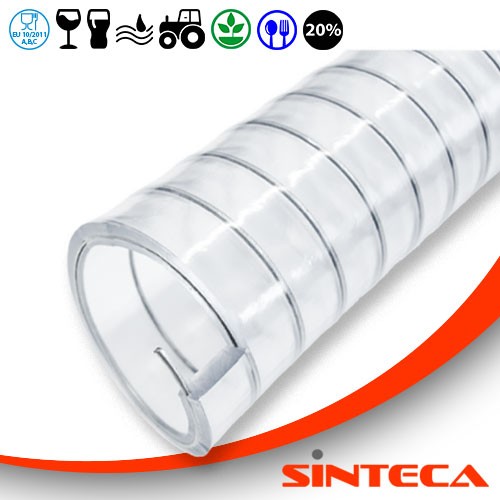 Flexibler und robuster Schlauch aus transparentem PVC mit Stahldrahtspirale